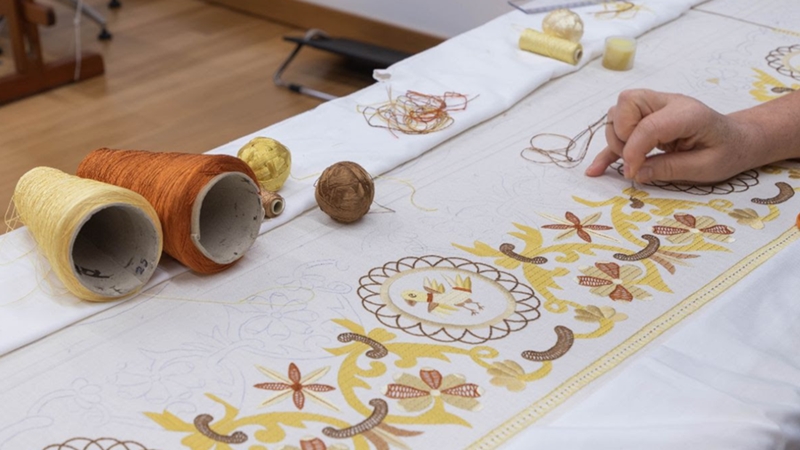 O Centro de Interpretação do Bordado de Castelo Branco, inaugurado em 2017, desempenha um papel fundamental na preservação e valorização desta tradição. Localizado na Praça Camões, no coração histórico da cidade, oferece um percurso completo através da história, das técnicas e das matérias-primas que dão vida ao bordado. O visitante pode acompanhar todo o processo, desde o cultivo do linho à criação da seda, passando pelo tingimento e pela prática do ponto largo. O centro funciona como museu, espaço educativo, oficina-escola e local de venda de peças certificadas. Guarda colchas antigas, documentos históricos, registos fotográficos e instrumentos de trabalho que ajudam a compreender a evolução desta arte. Promove ainda ações de formação e atividades pedagógicas, assegurando que as novas gerações têm contacto direto com o saber tradicional. Em 2025, o Bordado de Castelo Branco foi inscrito no Inventário Nacional do Património Cultural Imaterial, reconhecimento que reforça o seu valor histórico, estético e identitário. |