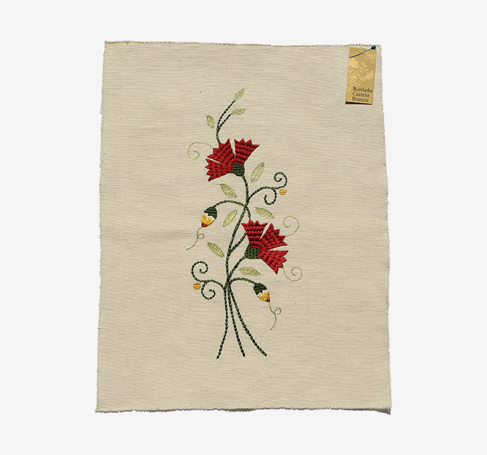 O Bordado de Castelo Branco é uma das expressões mais marcantes do artesanato português e reflete a longa tradição têxtil da Beira Baixa. A sua origem está profundamente ligada ao cultivo do linho, que durante séculos marcou o quotidiano agrícola da região, e à criação do bicho-da-seda, alimentado pelas amoreiras que sempre abundaram na paisagem local. Esta combinação de técnicas e matérias-primas permitiu o desenvolvimento de uma arte que se distingue pela utilização de seda natural, pela delicadeza dos desenhos e pela forte carga simbólica dos seus motivos. Entre os séculos XVII e XVIII, esta forma de bordado alcançou grande prestígio, sendo valorizada em todo o país e constituindo uma peça essencial nos enxovais familiares.